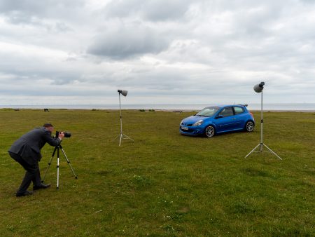 You will notice frame left, the Elinchrom One is just short of two meters high, firing through a 26cm reflector. It’s positioned high and directed straight towards the front of the car, so as to help reduce the liability of light reflected back towards the camera. The output was set to maximum at 4.3 (Equivalent to 131Ws).